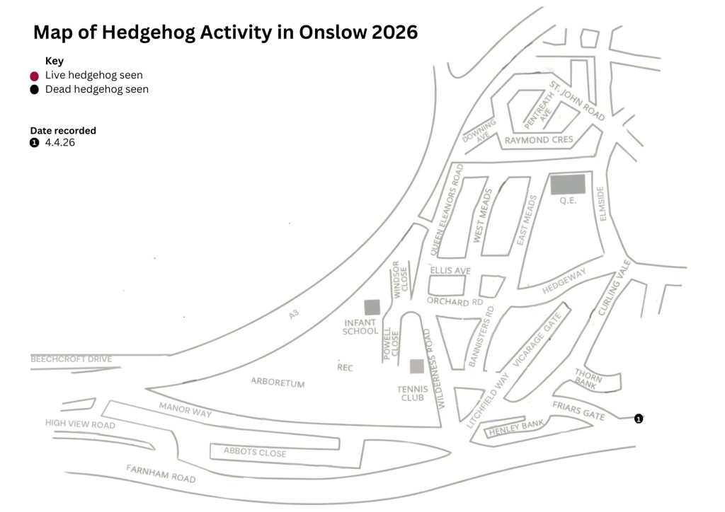 Whilst recently there is some hope that the decline in urban areas may have slowed down, the decline in rural areas continues, with between a third and three quarters of the rural hedgehog population having been lost since 2000. It is thought that there are only about 800,000 hedgehogs left in the UK. Where they were previously common visitors to the gardens of Onslow, they are now rarely seen by most of us.