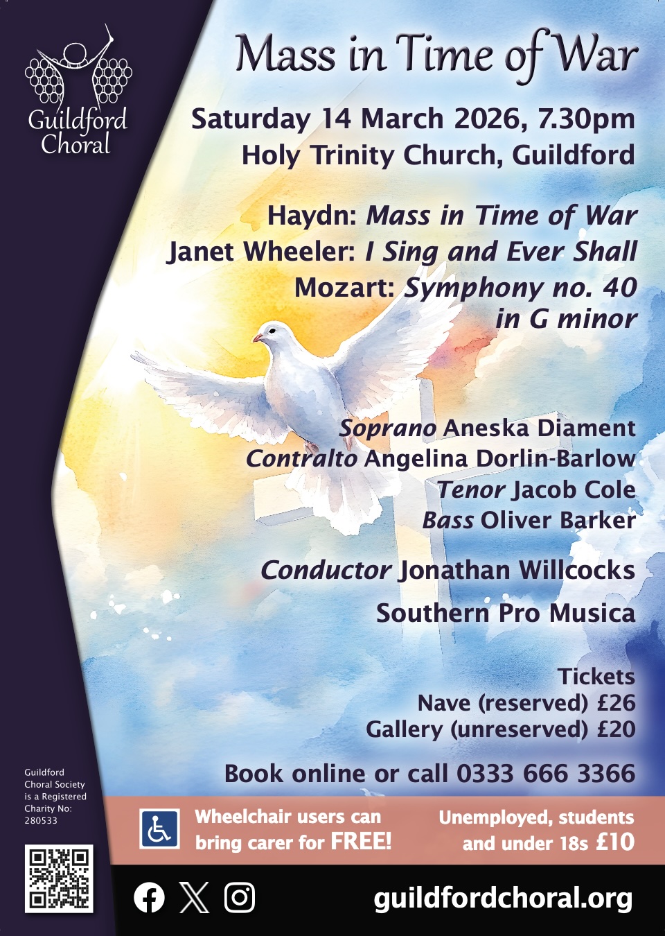 | Saturday 14th March | Guildford Choral Concert – Mass in Time of War 7.30pm Holy Trinity Church |
